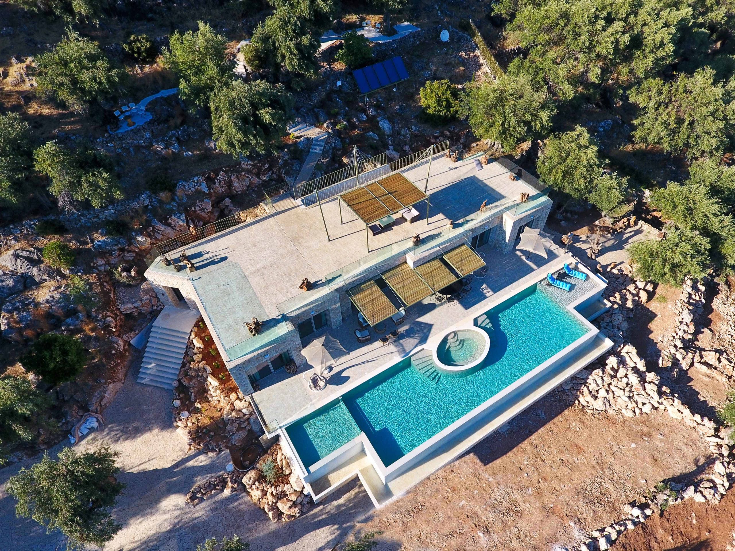 This 300sq meter 1-level villa is built in a quiet location inside a green olive grove, offering views of the sea. The key features of this property are the outdoor jacuzzi and the 230sq meter roof terrace.