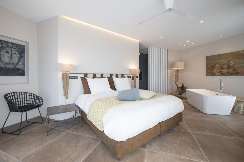 This 300sq meter 3-level villa features a modern, minimal design with lush greenery and sea views and is located inside a 10.000sq meter plot of land. The property features a playroom and an outdoor jacuzzi as well as a treehouse.