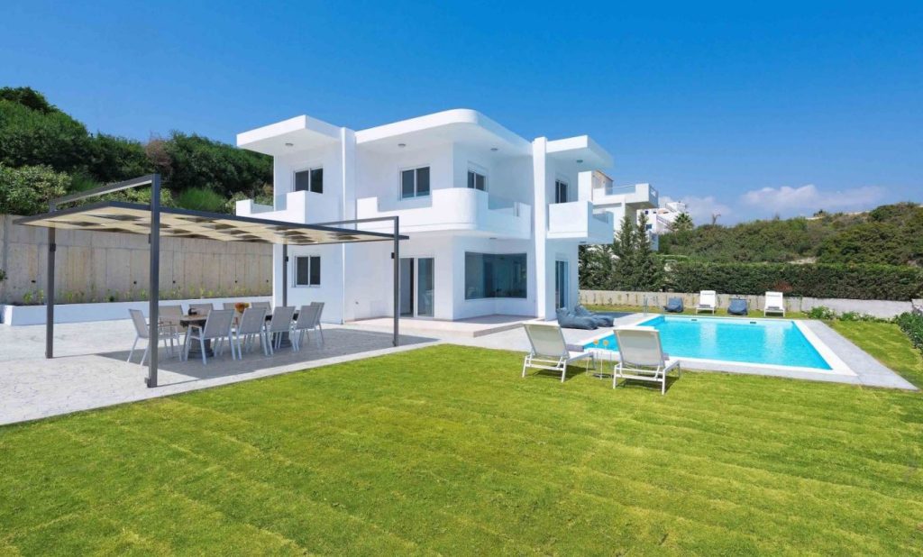This 165sq meter villa stands inside a 1.050sq meter plot. It has beautiful uninterrupted sea views and an outdoor area for a variety of uses. Also includes an outdoor BBQ.