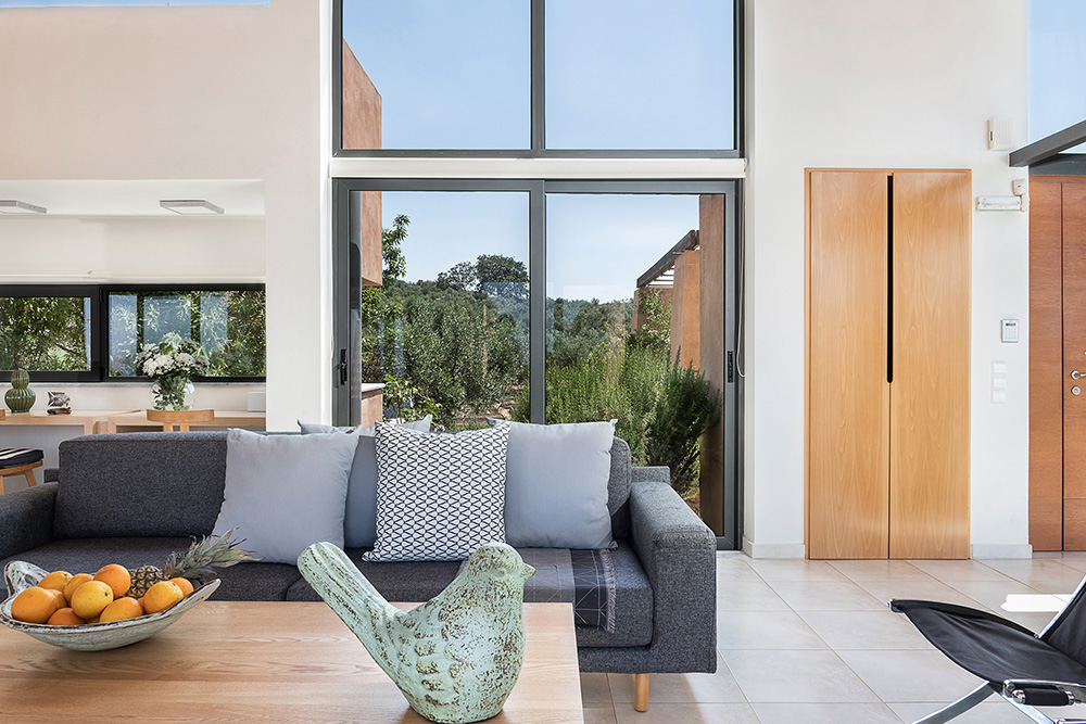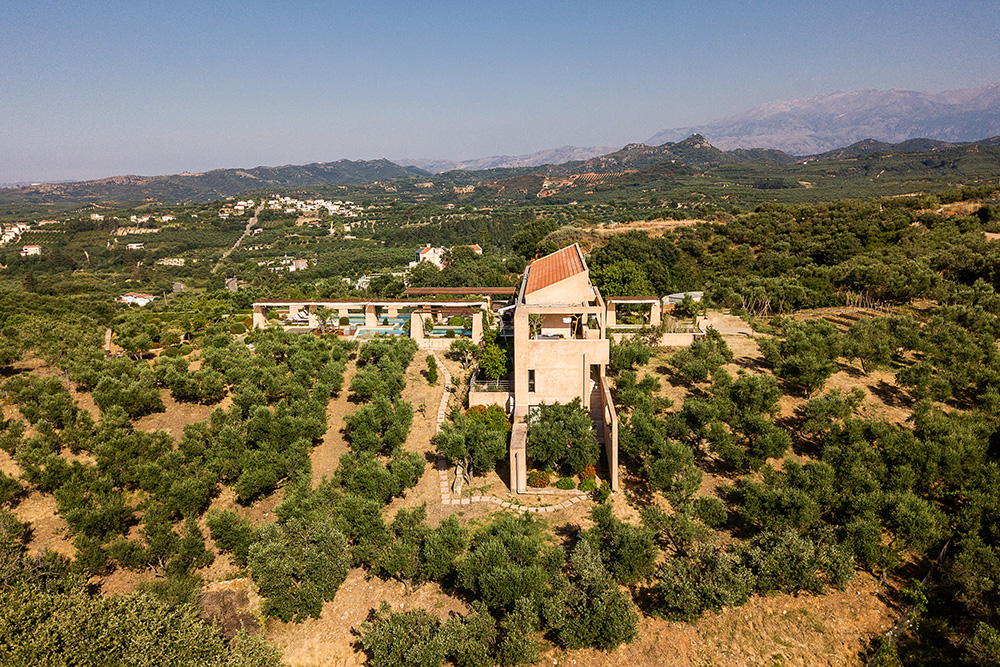 This luxury villa in Chania, Crete, offers a tranquil, private location. Its innovative architecture creates a sense of freedom and spaciousness. The property features 270 m² of living space, 110 m² of terraces, and sits on a 7,000 m² plot across four semi-levels.